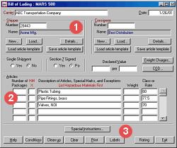 Shippers can easily create a bill of lading detailing shipper, consignee and billing information, and commodities being shipped. An unlimited number of shipper and consignee address and related commodity description lists may be entered and saved.