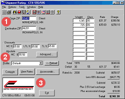 The rating screen is clean and easy to read. Discounts, class exceptions and other user preferences can easily be preset and maintained. All input needed to rate a U.S. shipment can be entered using the 10-key pad on a keyboard. The toolbar provides access to other modules.